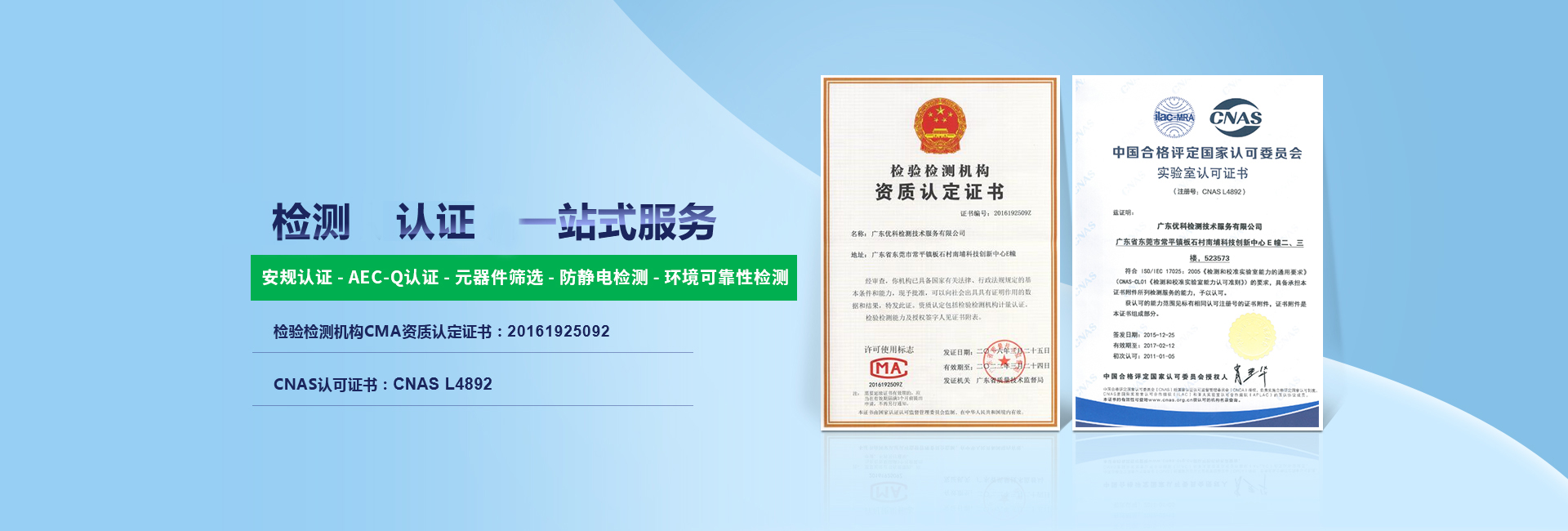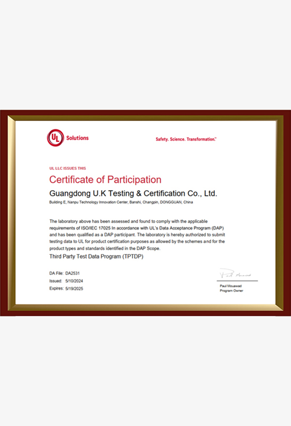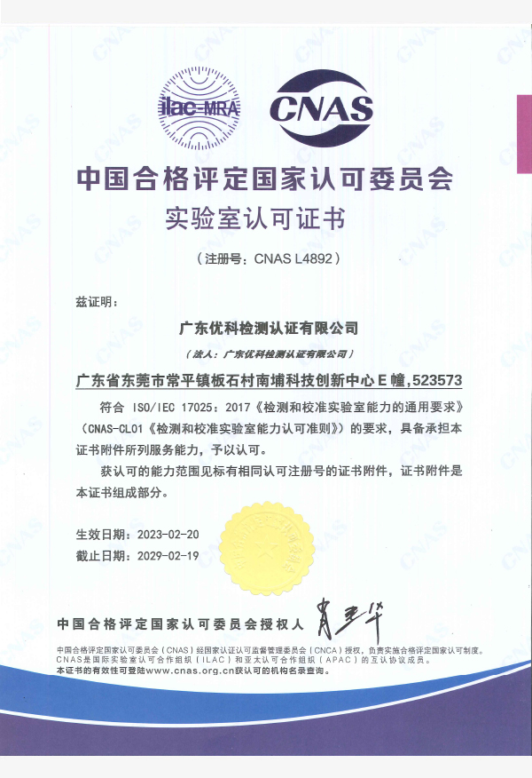廣東優(yōu)科檢測(cè)認(rèn)證有限公司(簡(jiǎn)稱:UKK)成?于2007年,是國(guó)內(nèi)專業(yè)的汽車(chē)整車(chē)及零部件、電子元器件第三方檢測(cè)實(shí)驗(yàn)室,國(guó)家級(jí)中小企業(yè)公共(技術(shù))服務(wù)示范平臺(tái),獲得了國(guó)家?新技術(shù)企業(yè)、廣東省專精特新中小企業(yè)、市級(jí)工程技術(shù)研發(fā)中心等榮譽(yù)稱號(hào)。 More